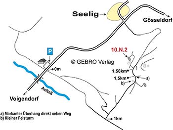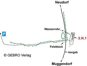 Bei dem Linksknick dem Wanderweg weiter folgen und gemäß Skizze zum Fels.